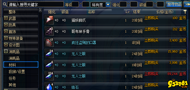 消耗品栏不只是有消耗品,如图;材料包括除副职业外的可交易材料;投掷道具在酒馆也可购买;任务一栏未知;其他包括魔盒以及商场中可交易道具