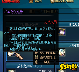 3.初始可上架10个拍卖道具,商城1200D点购买拍卖行优惠券后可上架30个,期限只有24h