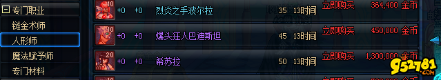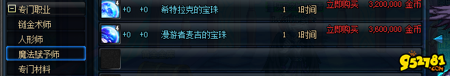 炼金材料可在诺顿商店购买;人形师是人偶;魔法赋予师是附魔宝珠;专门材料是附魔卡片