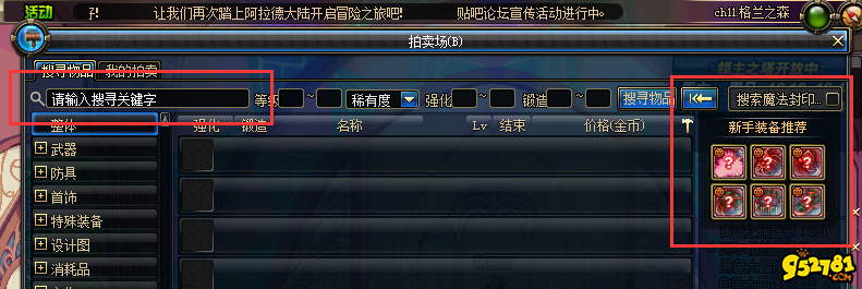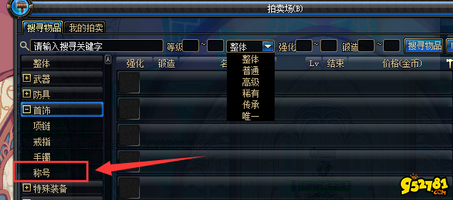 按职业和装备类型查找不必细说,需要注意称号属于首饰一栏,但魔盒开出的意志类称号和设计图无法上架拍卖行;装备品级 整体 指所有类型,唯一 指粉色装备,玩家可先到装备辞典了解各装备属性再选择购买装备。