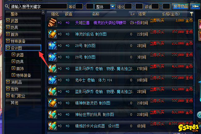 其中不只是有装备的设计图,副职业设计图也包括在内,直接选中设计图即可搜索到副职业相关设计图